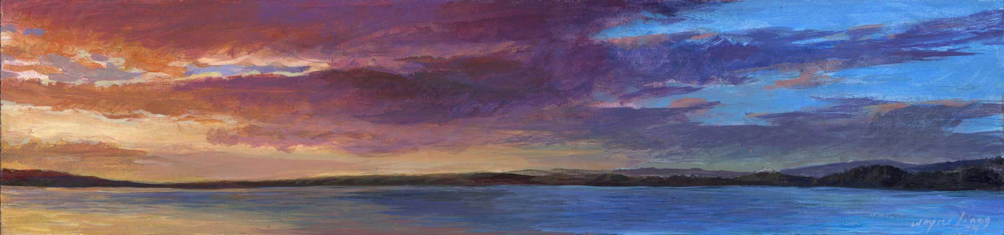 Sauvie Island Twilight 4"x16", Acrylic on Panel, 2024, SOLD